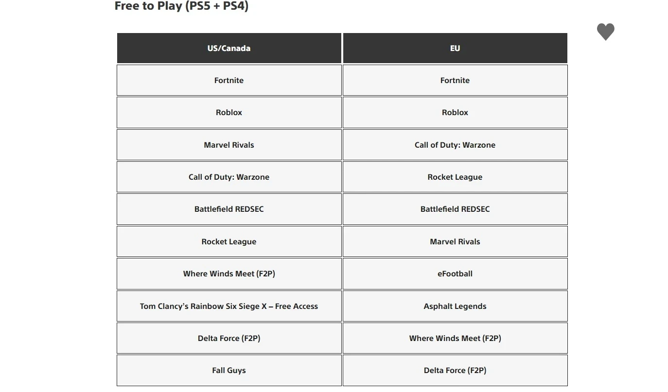 Топы условно-бесплатных игр на PS5 и PS4 выглядят следующим образом. Тут у нас в тройках лидеров Fortnite, Roblox, Marvel Rivals и Call of Duty: Warzone.