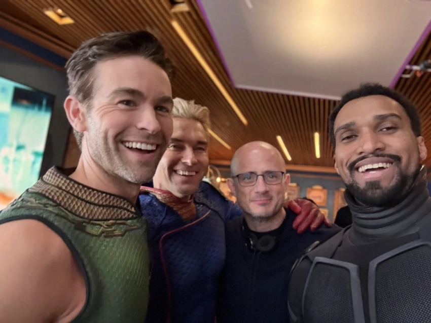 На кадрах можно увидеть создателя сериала Эрика Крипке и несколько главных актёров — Чейса Кроуфорда (Подводный), Энтони Старра (Хоумлендер) и Нэйтана Митчелла (Чёрный Нуар). Позже отдельной фотографией поделился и Карл Урбан, который играет Билли Бутчера.