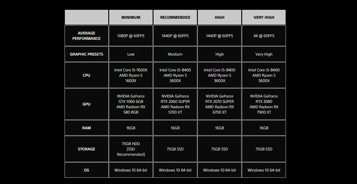 Общее для них то, что экшен займёт 75 ГБ на SSD и потребует от 16 ГБ оперативной памяти. Кроме того, Stellar Blade на PC защищает Denuvo.