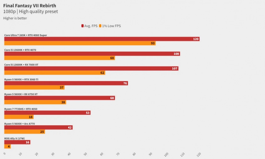 Частота кадров FF7 Rebirth на высоких настройках в FullHD-разрешении