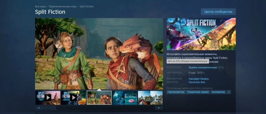 Игроки также успели оставить на Split Fiction 633 обзора. Из них 96% — это «палец вверх», поэтому общий рейтинг новинки «крайне положительный».