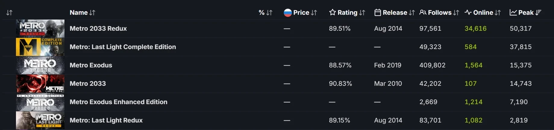 50 тысяч единовременных игроков в Steam — отличный показатель, который стал рекордом для серии. Так, в полную версию Metro: Last Light (оригинал, а не Redux) на пике играло почти 36 тысяч человек. В Metro: Exodus одновременно находилось 15,3 тысячи человек, однако шутер добрался до Steam гораздо позднее, чем до Epic Games Store. Оригинальная Metro 2033 привлекла к себе менее 15 тысяч человек на пике.