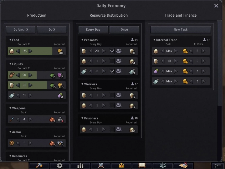 • Меню производства и финансов объединены на основе задач.