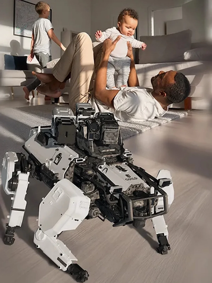 - У The Guild три ключевых продукта антропоморфный робот для автономного патрулирования и оценки угроз; вооруженный наземный дрон для выявления и нейтрализации агрессии (без юридической ответственности владельца) R.A.W.G.; и автономный аэродрон для сканирования, картографирования и оценки рисков в реальном времени.